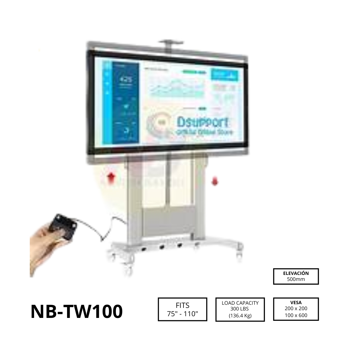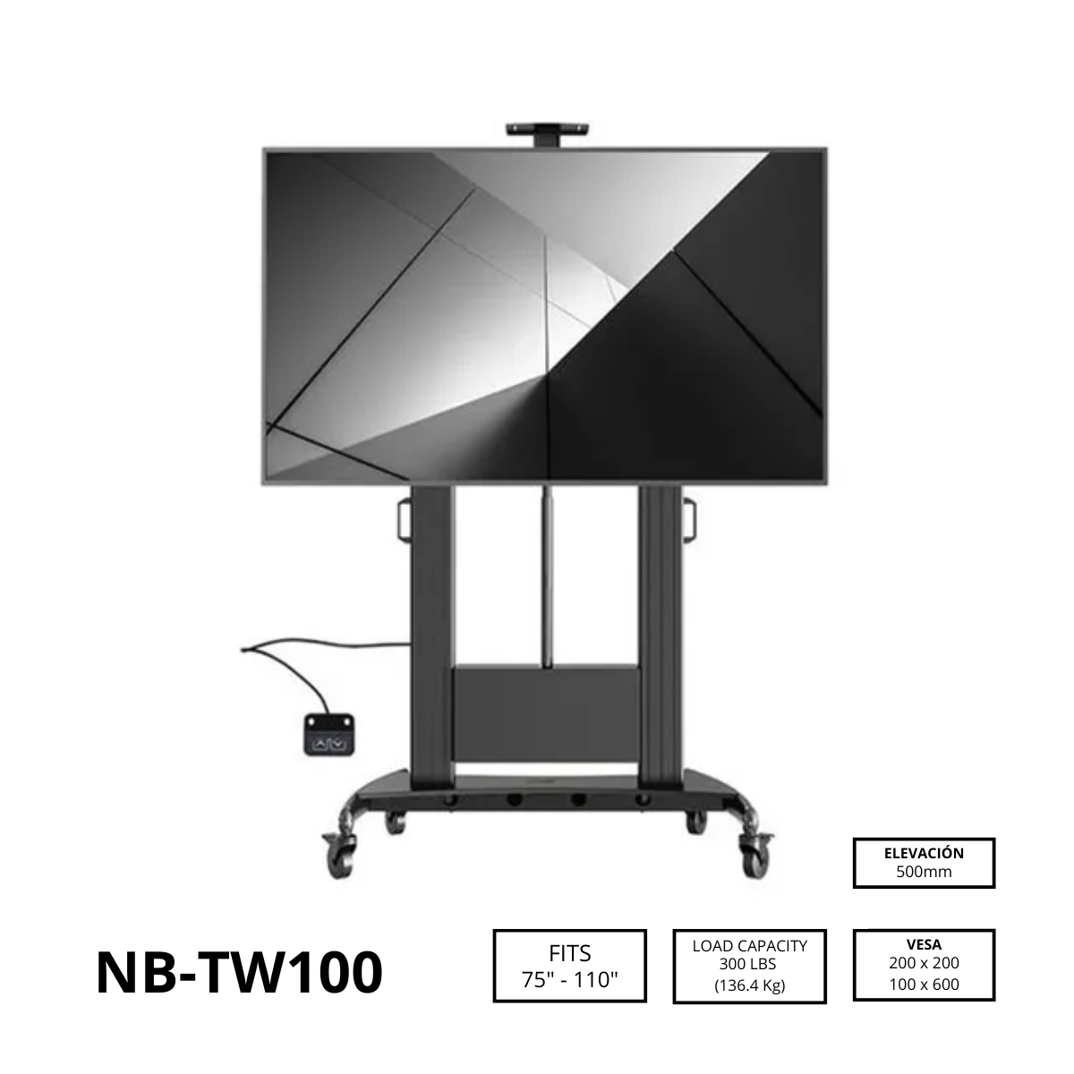 Para pantallas entre 75″ y 110″ y hasta 300 libras de capacidad. Puede instalarse en todo el territorio nacional.